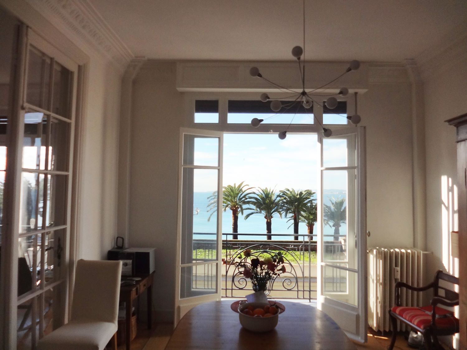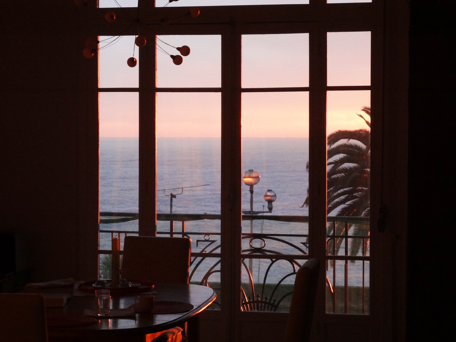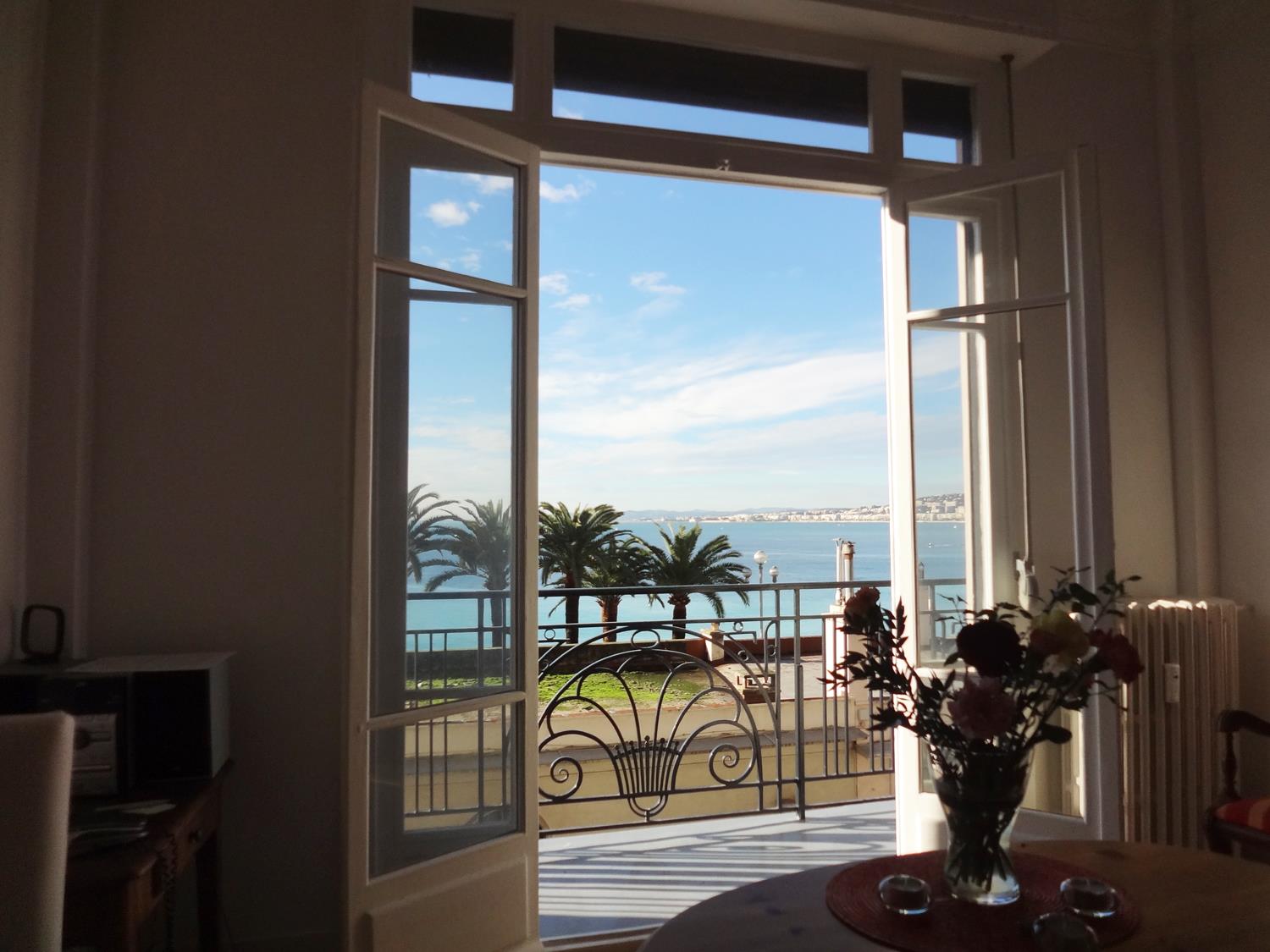 Der traumhafte Blick über die Bucht von Nizza ist zu jeder Tageszeit etwas Besonderes. Das Meer schimmert in den verschiedensten Farben, die Palmen vor den Fenstern erinnern an das milde Klima, und die Lichter und Farben der Stadt an das Leben drumherum.