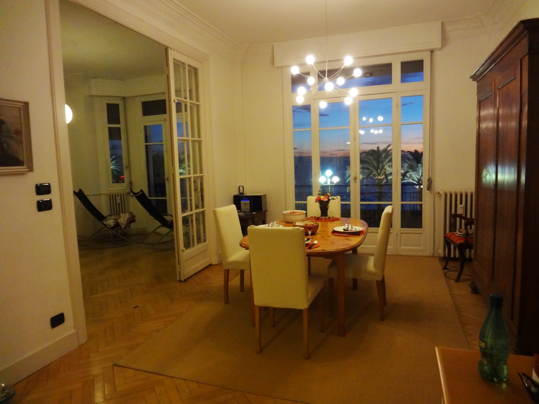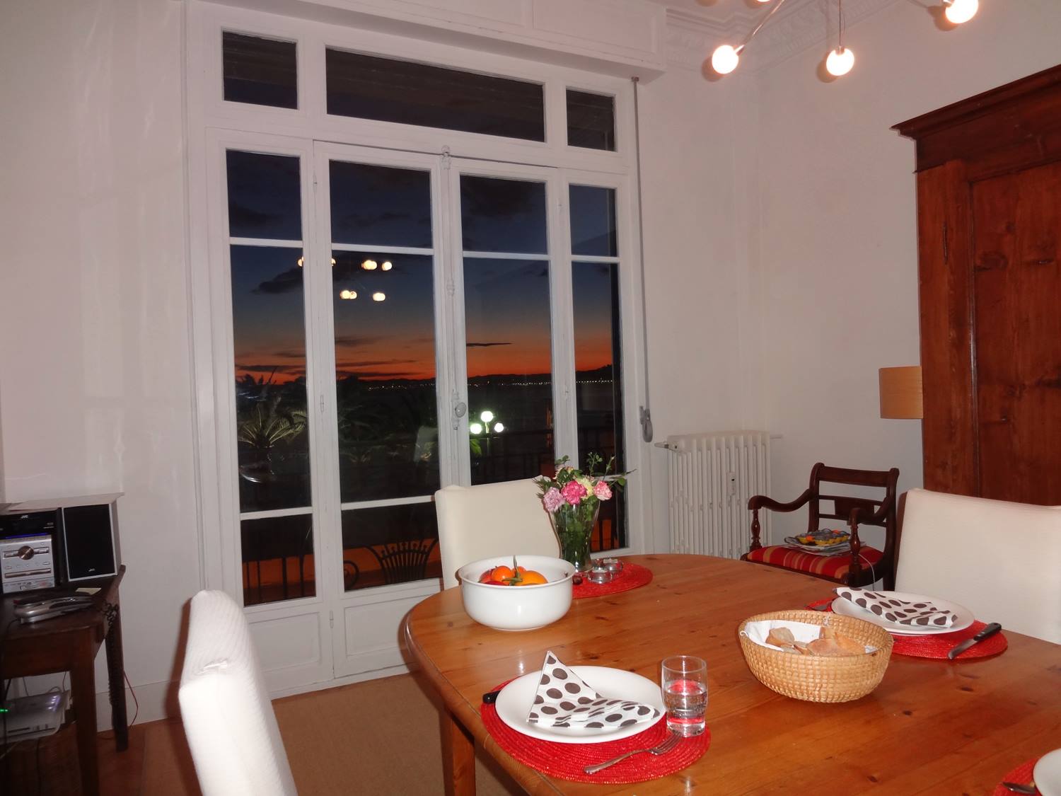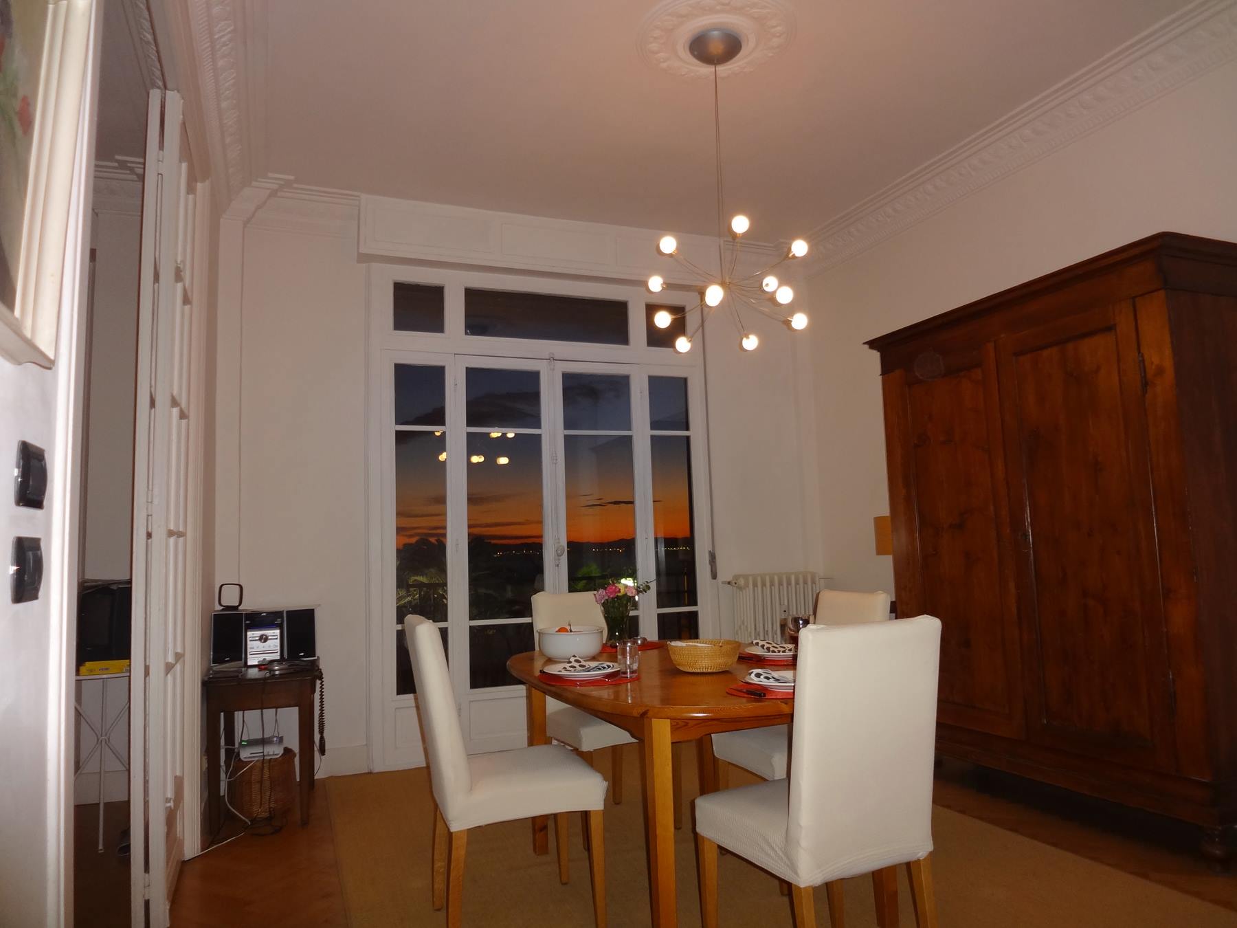 Der traumhafte Blick über die Bucht von Nizza ist zu jeder Tageszeit etwas Besonderes. Das Meer schimmert in den verschiedensten Farben, die Palmen vor den Fenstern erinnern an das milde Klima, und die Lichter und Farben der Stadt an das Leben drumherum.